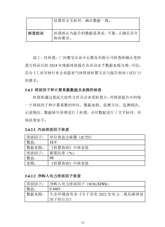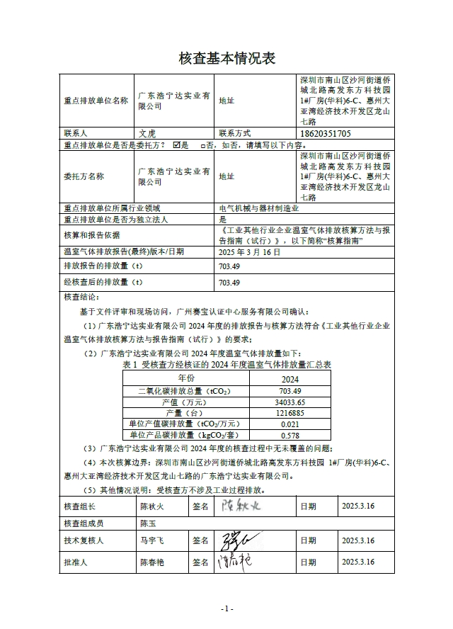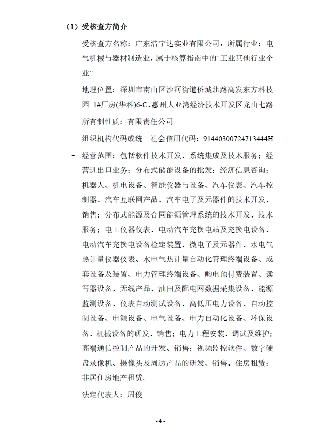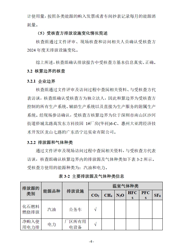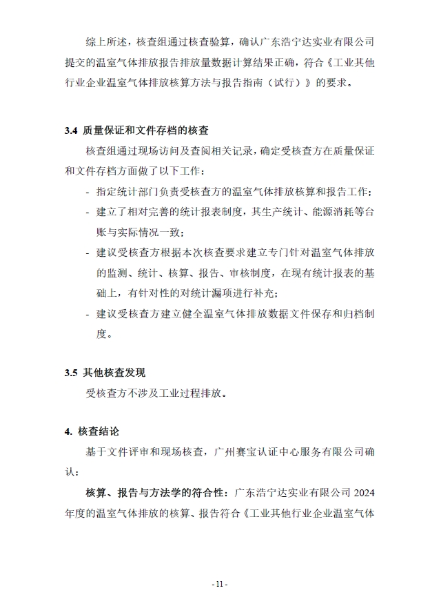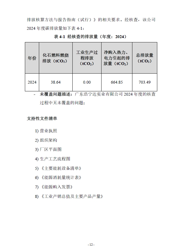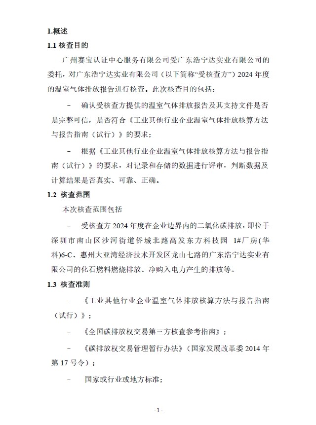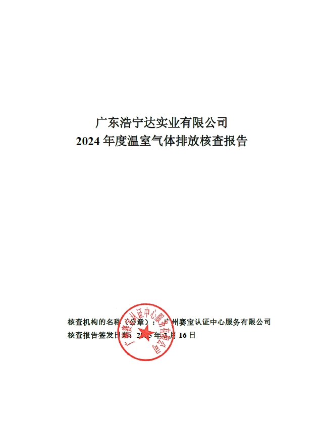 广东浩宁达实业有限公司2024年度温室气体排放核查报告
